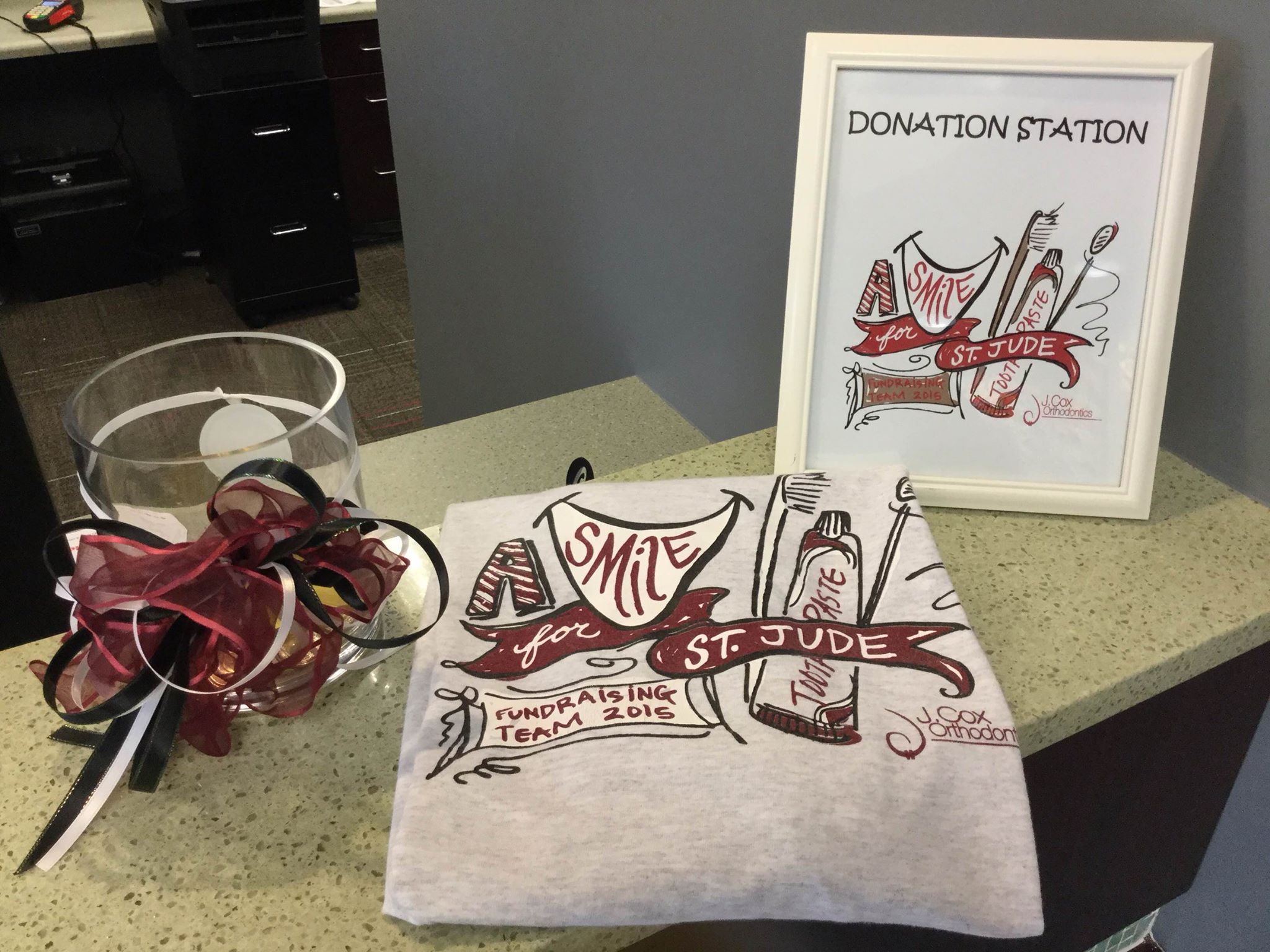 Donate $15 or more and receive a FREE J. Cox Orthodontics St. Jude t-shirt!!