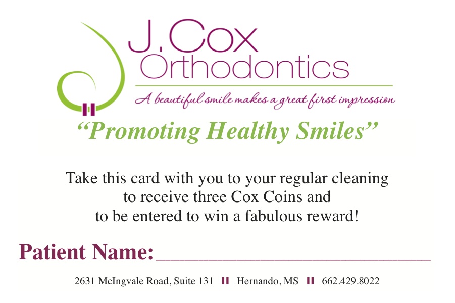 During the month of October, Dr. Cox is thinking “PINK” for National Breast Cancer Awareness Month. Choose “PINK” ties for your braces and Dr. Cox will give you an extra Cox Coin!